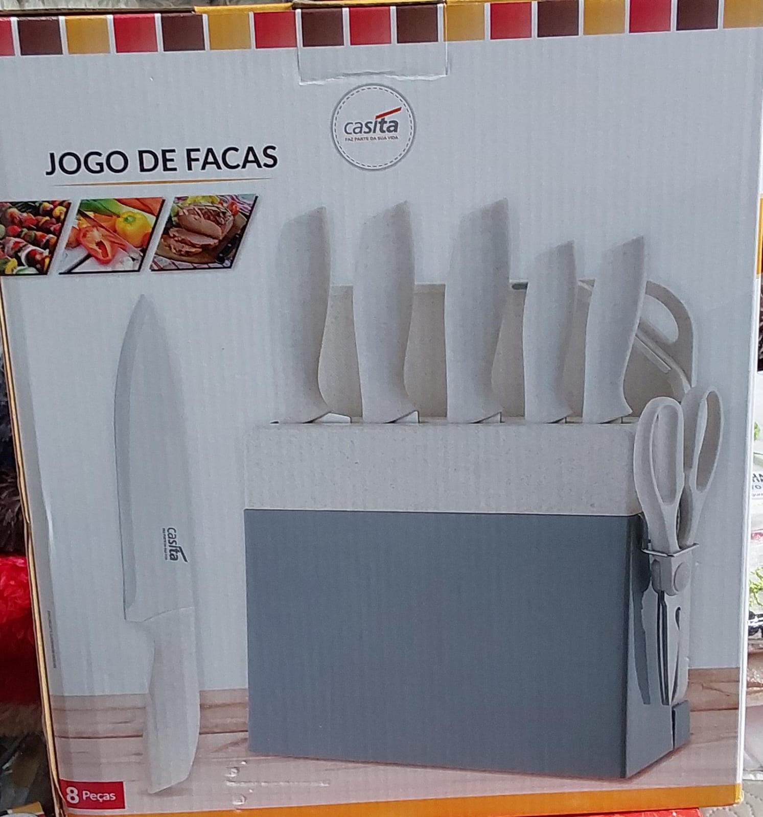 JOGO DE FACAS 08 PEÇAS COM TÁBUA