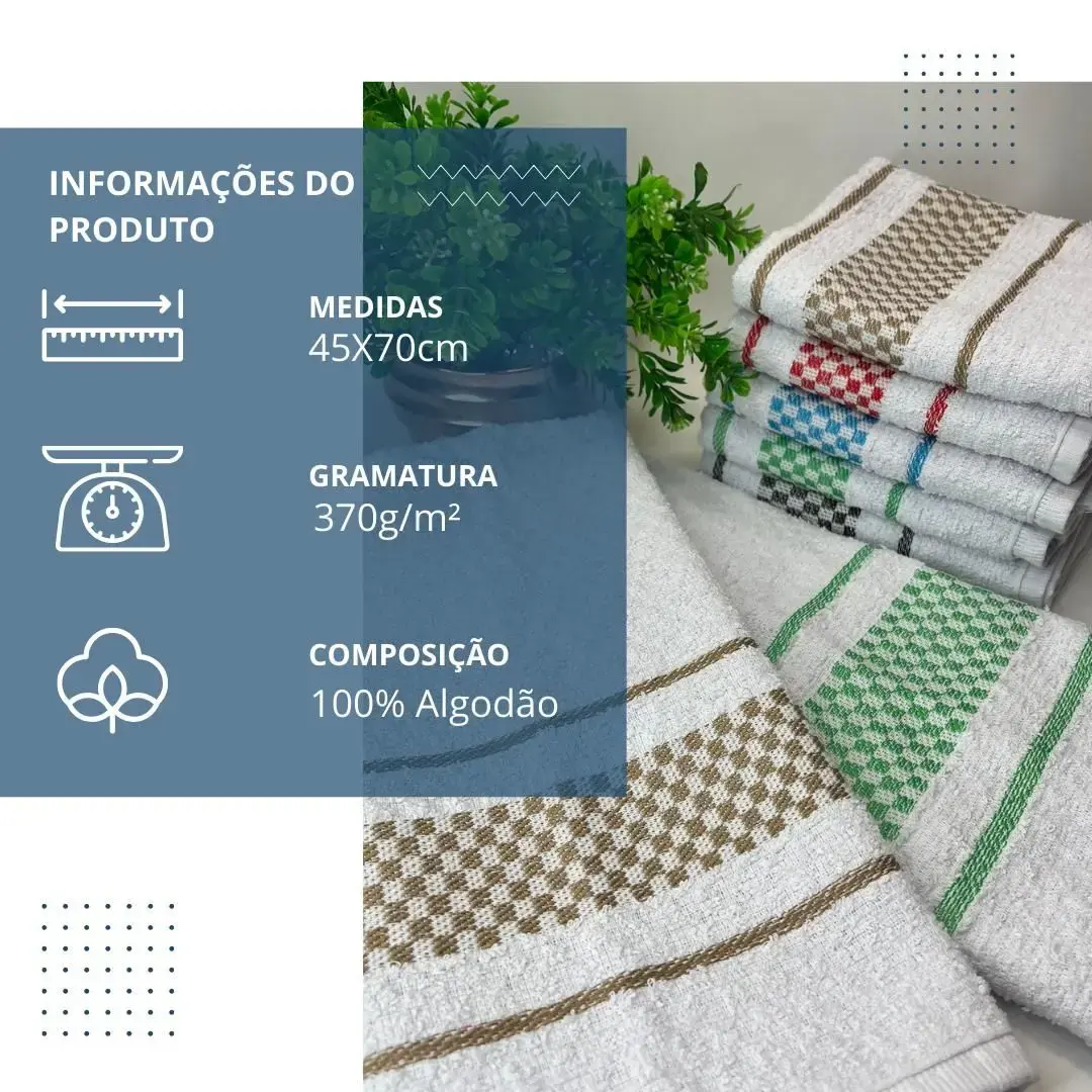 Descubra o Pano de Prato Atoalhado Premium, a escolha ideal para sua cozinha! Com 45x70 cm e feito de 100% algodão felpudo, este pano oferece alta absorção e durabilidade, tornando suas tarefas domésticas mais fáceis e eficientes. Perfeito para secar louças, limpar superfícies e até mesmo como um toque decorativo na sua cozinha.